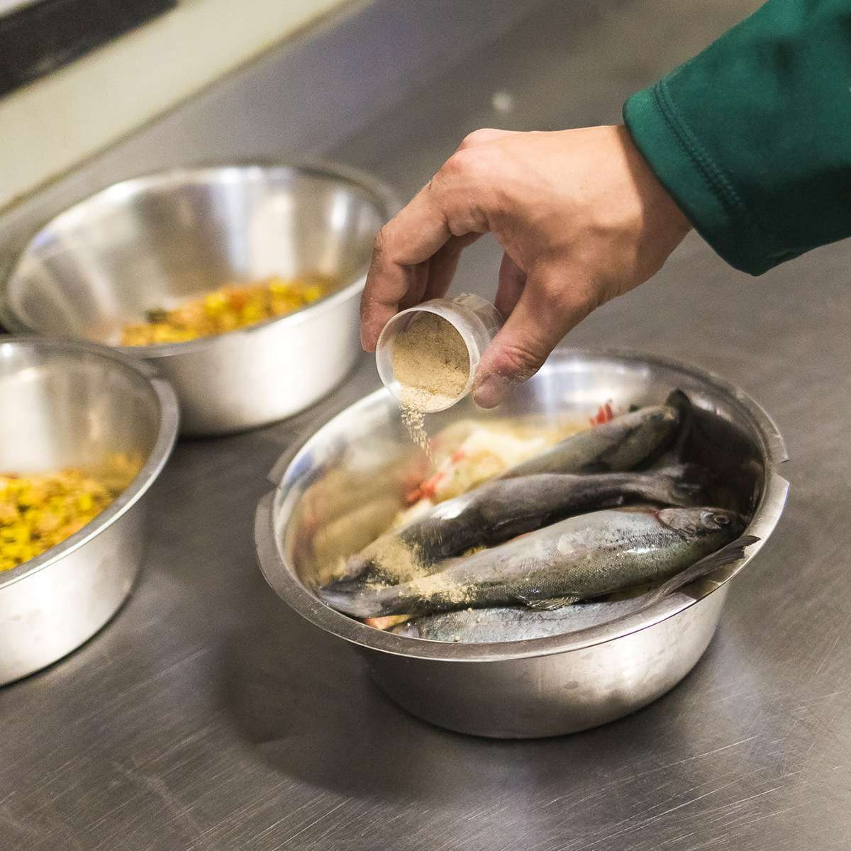 Il processo di estrusione inoltre permetteva di fornire l’alimento secco su mangiatoie o direttamente in acqua.