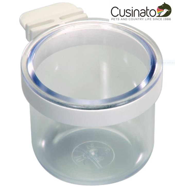 Mangiatoia per uccelli porta pastone con coppetta rimovibile Fornita con anello bianco o mix color per il fissaggio alla gabbia Art 094 2GR