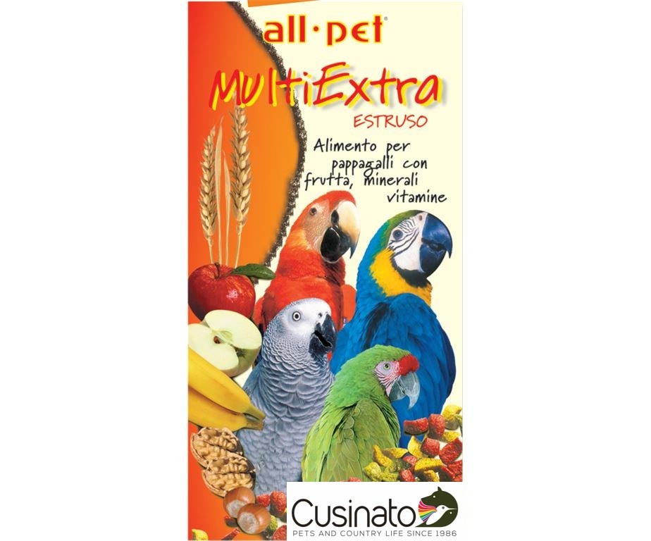 Alimento completo estruso per il mantenimento dei Pappagalli con frutta, minerali e vitamine.