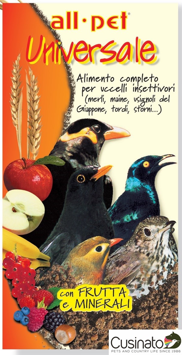 Mangime completo composto per uccelli insettivori (Merli, Tordi, Maine, Usignoli del Giappone, Tordi, Storni…)