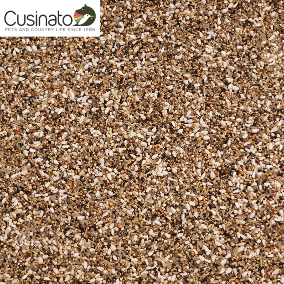 Semi di lino, cartamo, dari bianco, semi bianchi, semi di canapa, colza nera, riso, miglio bianco, sorgo rosso, miglio giallo, colza, avena decorticata.