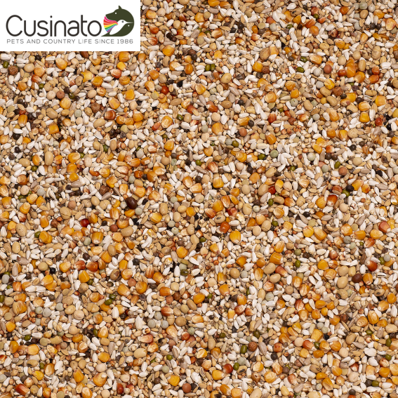 Dari bianco extra, mais piccolo cribbs, semi di cartamo, risone, sorgo rosso, grano bianco, semi di canapa, mais merino, semi di soia tostati, veccia, piselli piccoli, fagioli mungo, semi di girasole decorticati, semi di colza neri, semi di lino, avena decorticata, orzo decorticato, grano saraceno, piselli dolci, piselli d’acero, lenticchie, riso integrale