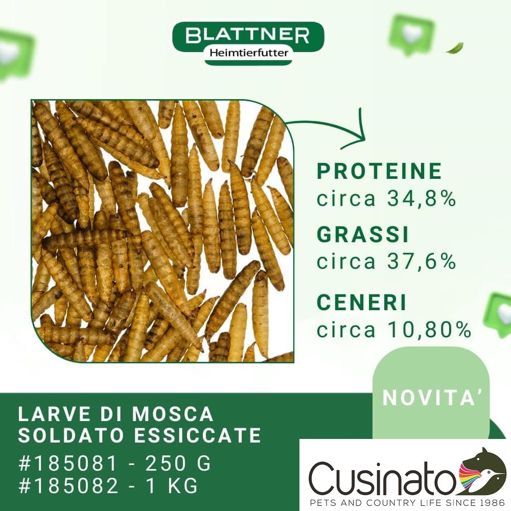 Larve di mosca soldato Hermetia essiccate 100% naturali  sono una preziosa fonte di proteine per uccelli insettivori, fringillidi ed esotici
