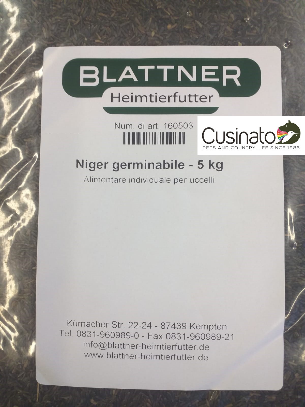 Niger Germinabile Blattner con alte percentuali di grasso (38-43%) e proteine (23%)