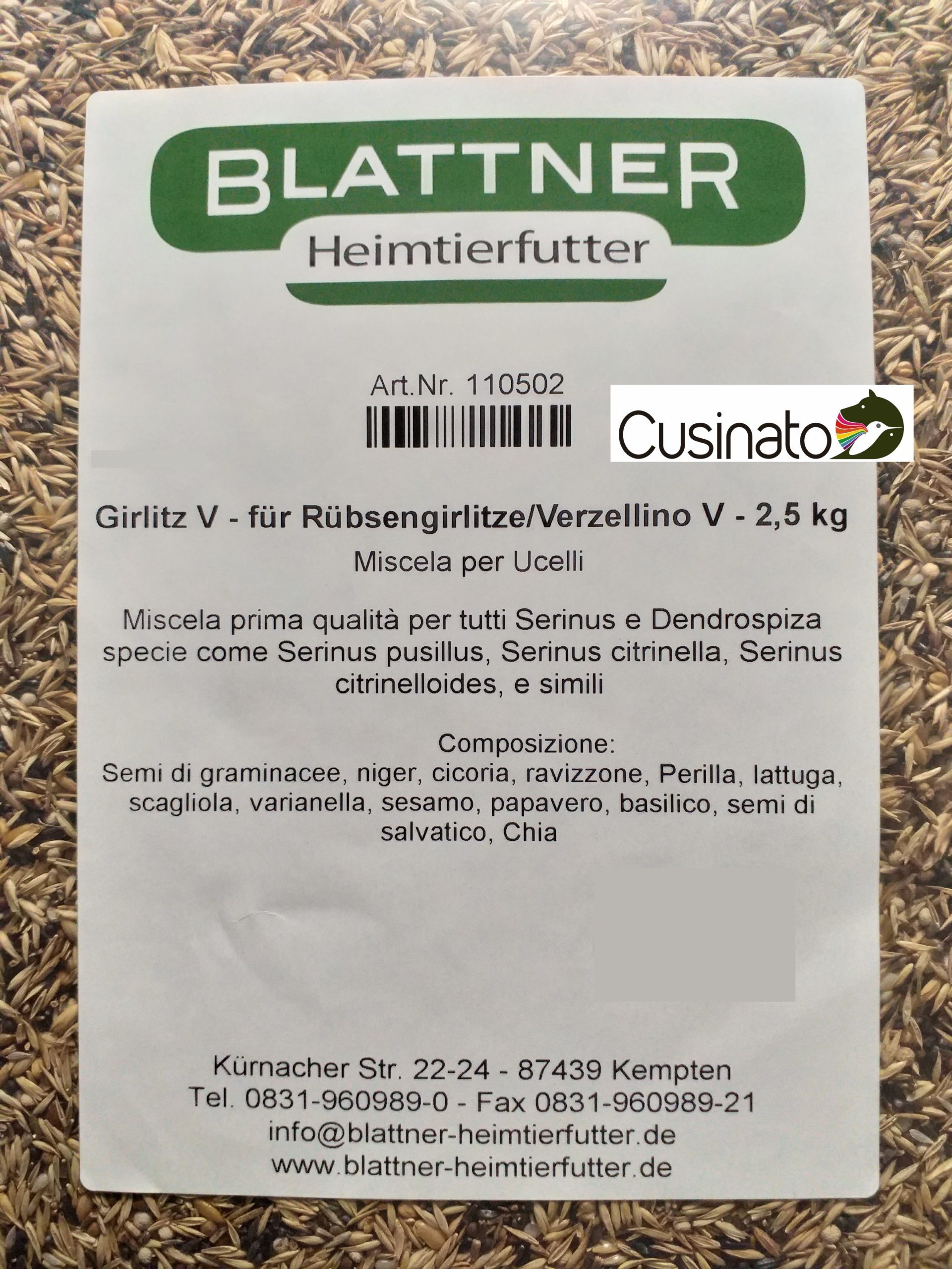 Miscela specifica per Serinus e Dendrospiza (Serinus pusillus, Serinus citrinella, Serinus citronelloides e simili)