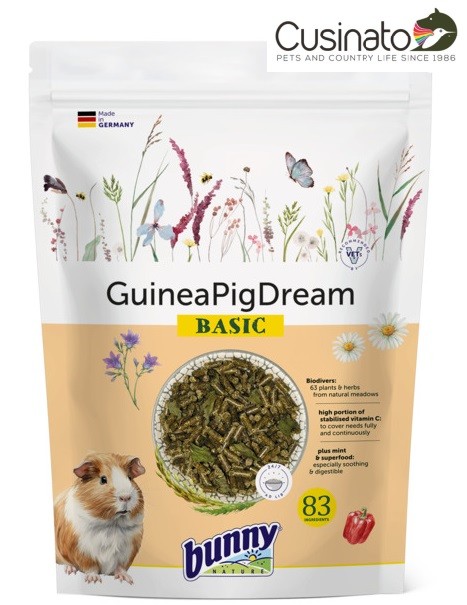 Sogno per Porcellini d’India BASIC offre una miscela bilanciata di 63 piante ed erbe provenienti da prati non trattati e un’elevata percentuale di vitamina C stabilizzata per coprire tutte le esigenze.