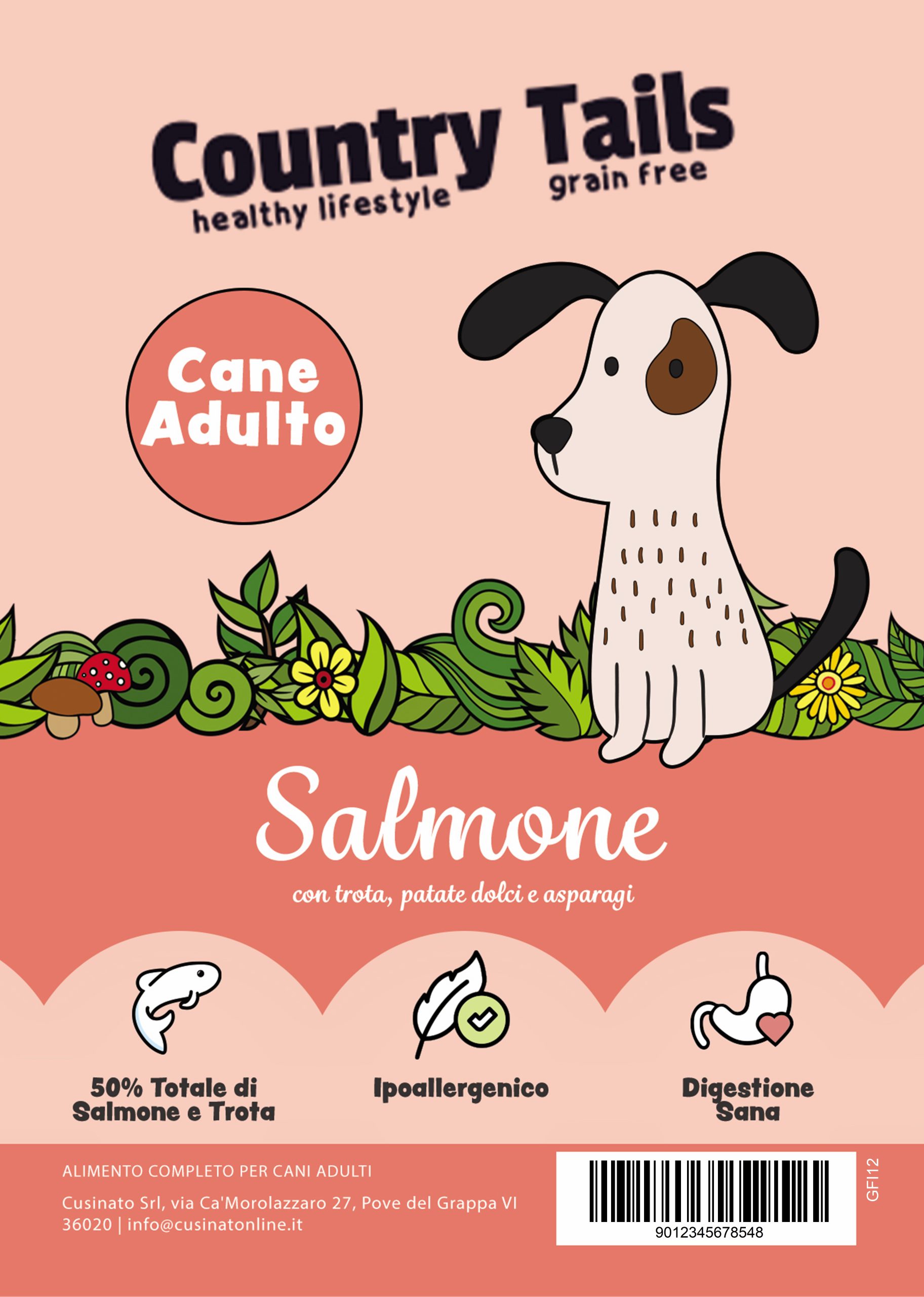 Country Tails Grain free a base di salmone con trota, patate dolci ed asparagi