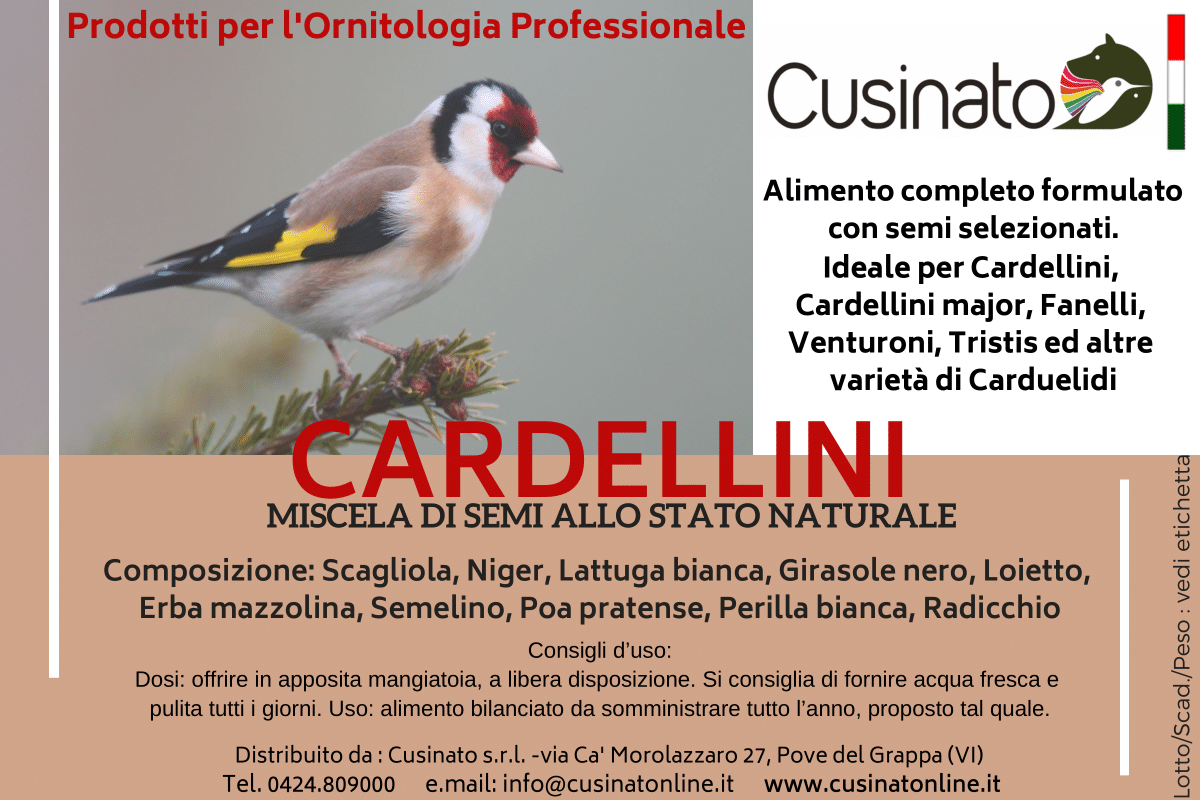 Alimento completo formulato con semi selezionati. Ideale per Cardellini, Cardellini major Fanelli, Venturoni, Tristis ed altre varietà di Carduelidi
