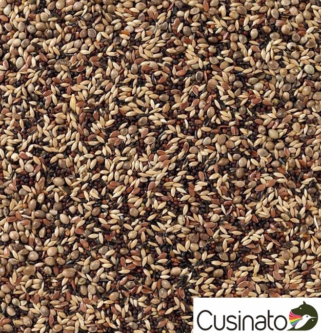 Scagliola extra 33% / Ravizzone 29% / Niger 20% / Canapa 6% / Semi di lino 12%