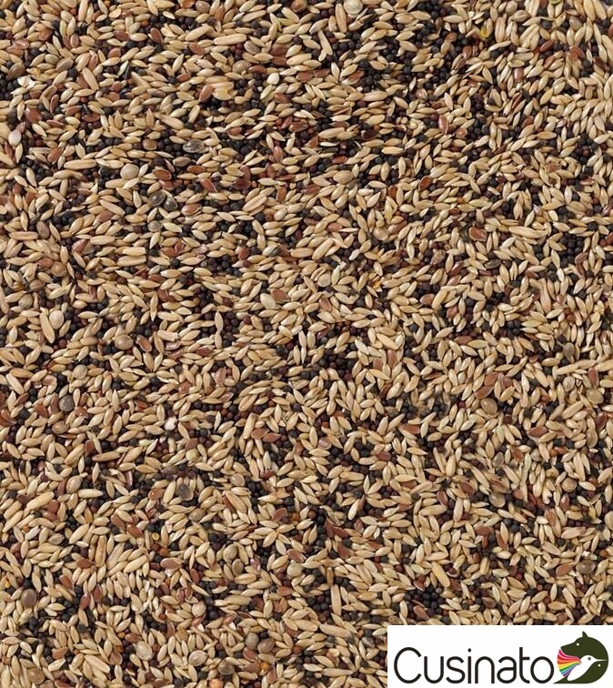 Scagliola extra 60% / Ravizzone 18% / Semi di colza 6% / Canapa 2% / Semi di lino 6% / Avena decorticata 6% / Niger 2%