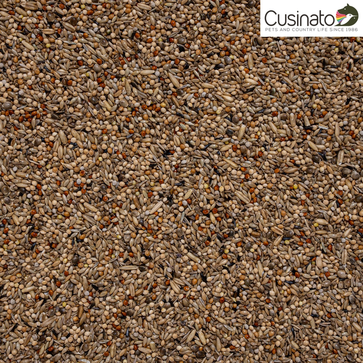 Scagliola, miglio bianco, miglio giapponese, miglio giallo, avena decorticata, miglio rosso, semi di canapa, panico giallo, semi di niger, semi di erba, perilla bianca.