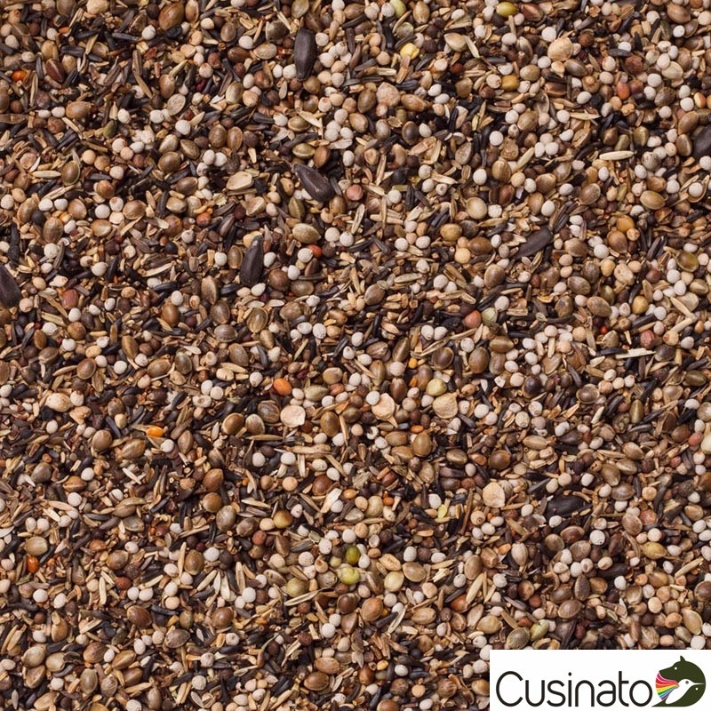 Alte percentuali di Cardo e Niger e grande varietà di semi speciali: Cicoria, Perilla, Lattuga, Bella di notte…