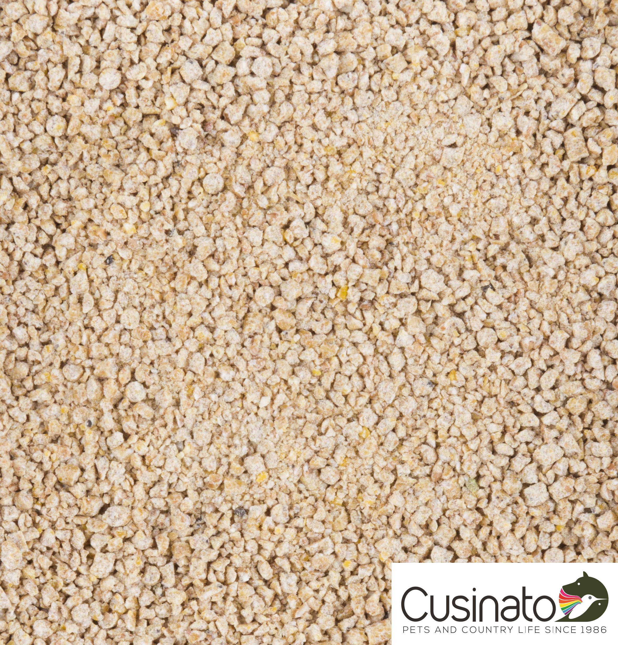 La forma sbriciolata incoraggia l’assunzione del mangime e garantisce meno sprechi rispetto ai pasti.
