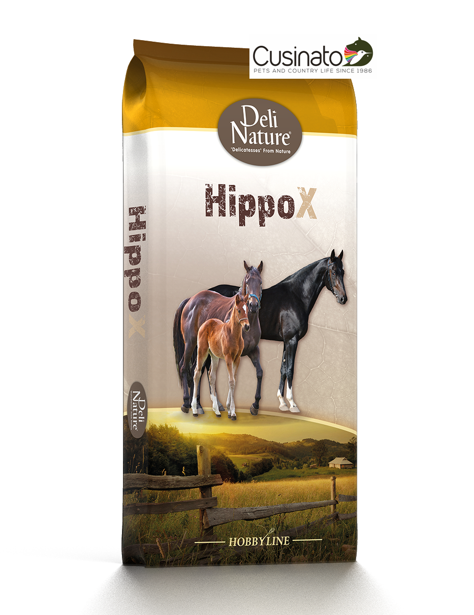 Mix di mantenimento con scaglie, altamente adatto per cavalli tenuti fuori in un paddock o cavalli che eseguono lavori leggeri.
