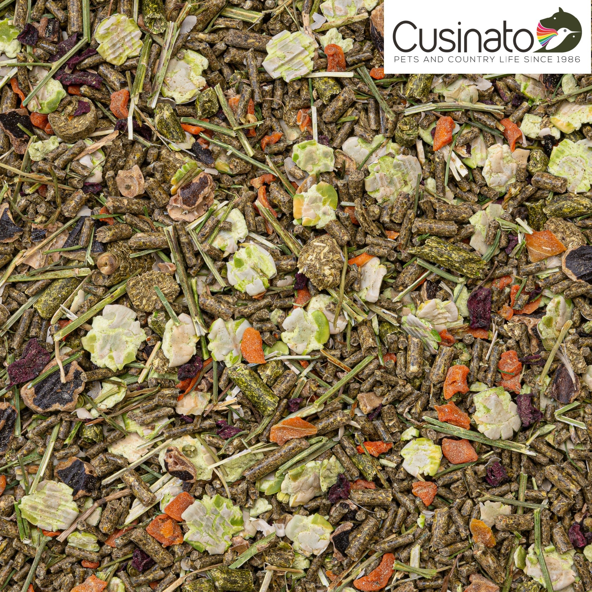 Farina di semi di girasole, erba medica, fiocchi di piselli, polpa di barbabietola, carruba, fieno di fleolo (5%), farina di colza, carota essiccata (4%), paglia di erba medica (3%), melassa di barbabietola (da zucchero), barbabietola essiccata (2%), olio di palma, prezzemolo (1%), fosfato monocalcico, cloruro di sodio, carbonato di calcio.
