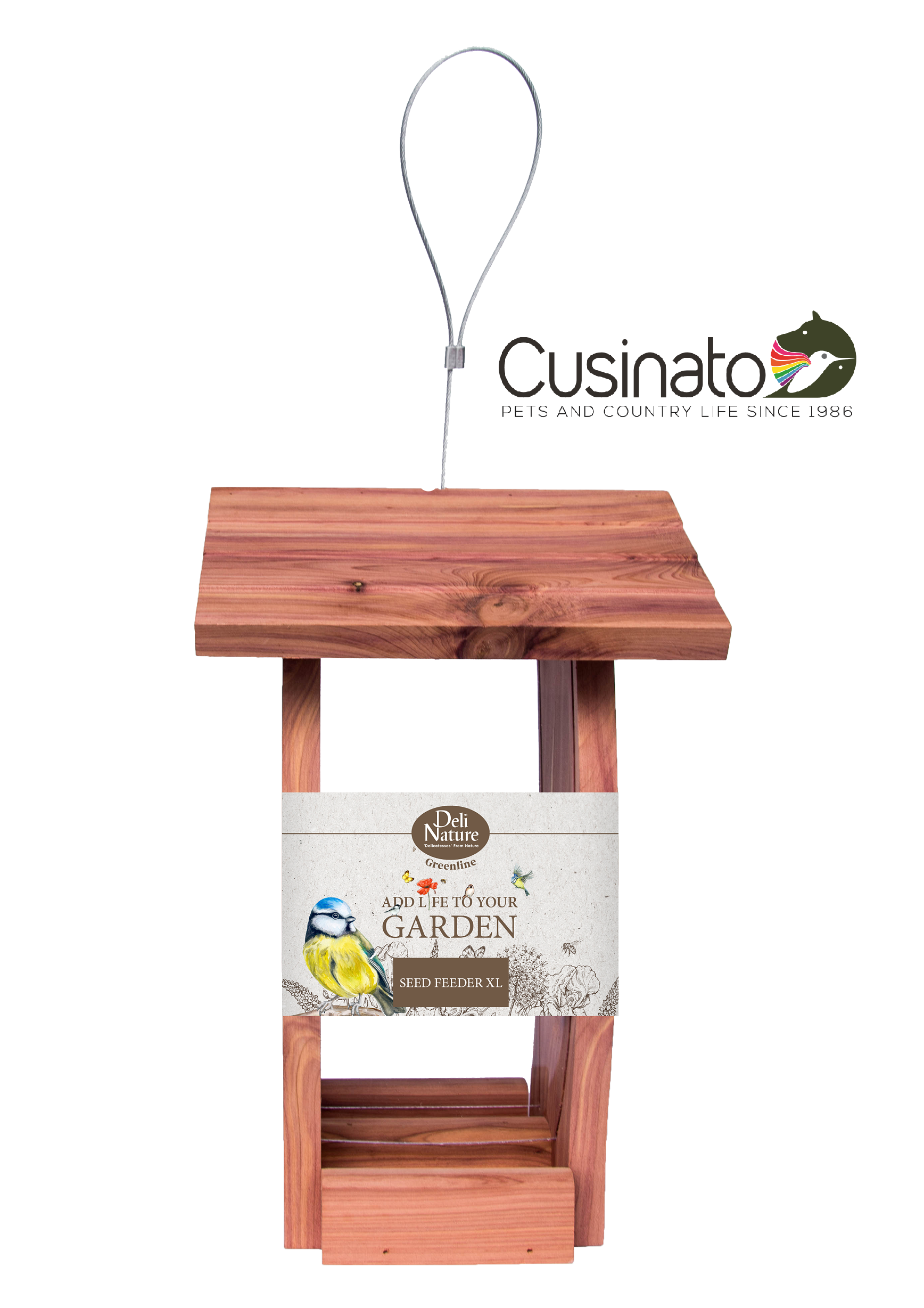 Prodotto in legno di cedro sostenibile. Questo alimentatore è ideale per l’alimentazione di diverse miscele.
