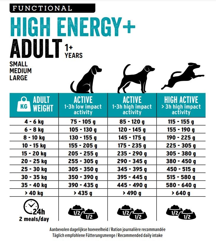 Sviluppato per cani con un alto livello di attività (= livello di esercizio), cani che si stanno riprendendo da una procedura medica e cani in gravidanza o in allattamento.