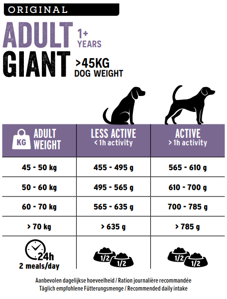 Dried chicken (26%), rice (26%), peas, dried potatoes, chicken fat, beet pulp, hydrolyzed chicken protein, minerals, vegetable fiber, brewer’s yeast, fish oil, collagen, yeast extracts (M.O.S., β-glucans (75 mg/kg)), F.O.S., plant extracts (50 mg/kg; Citrus sp., Rosmarinus sp., Vitis sp., Curcuma sp., Eugenia sp.), glucosamine, chondroitin sulphate.