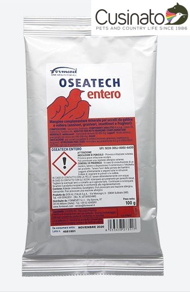 Miscelare accuratamente 4-6 g di OSEATECH ENTERO ogni kg di pastoncino.