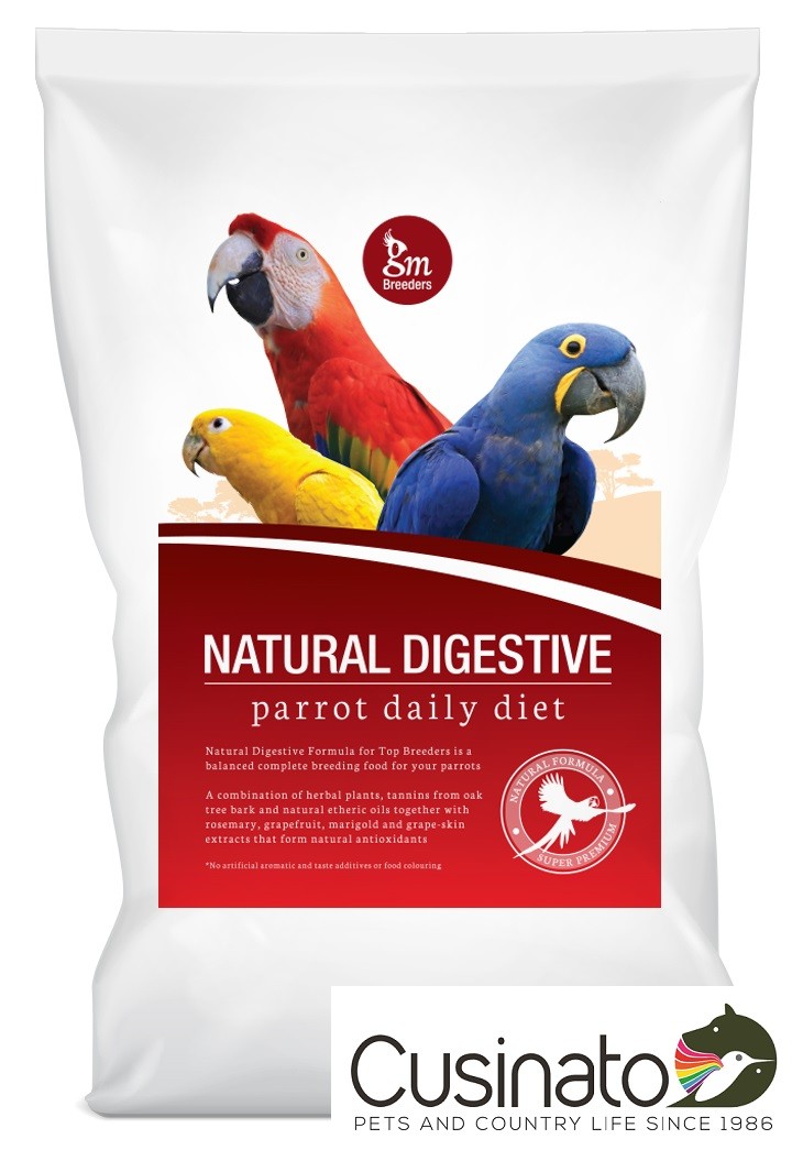 Natural Digestive Formula (NDF) fornisce un’alta percentuale di proteine, grassi, aminoacidi, vitamine e calcio particolarmente idonei per il periodo riproduttivo e per il mantenimento di una vita sana dei Pappagalli.