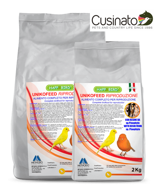 UNIKOFEED riproduzione è un alimento completo in farina dedicato all’allevamento di tutti gli uccelli granivori e a tutti i fringillidi.