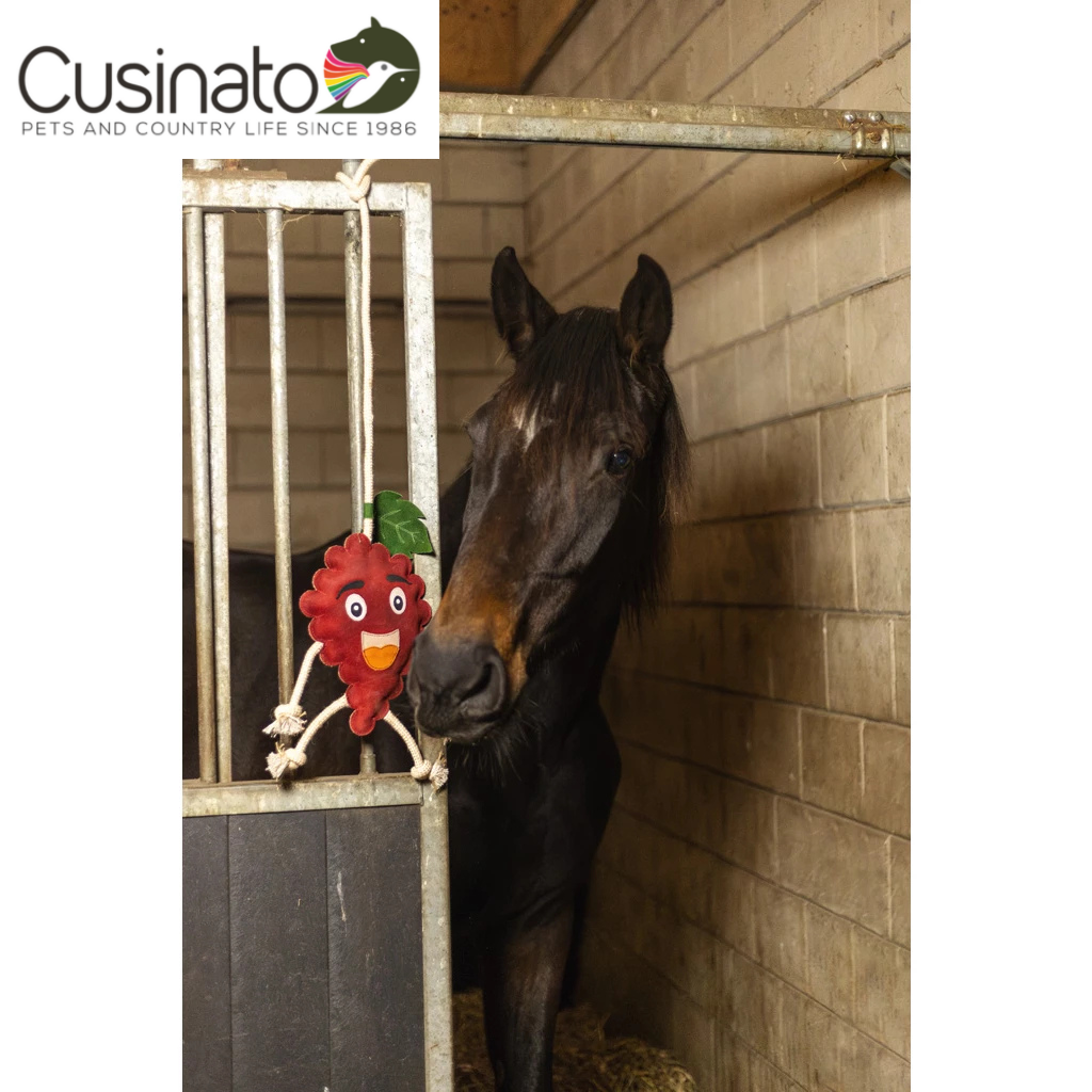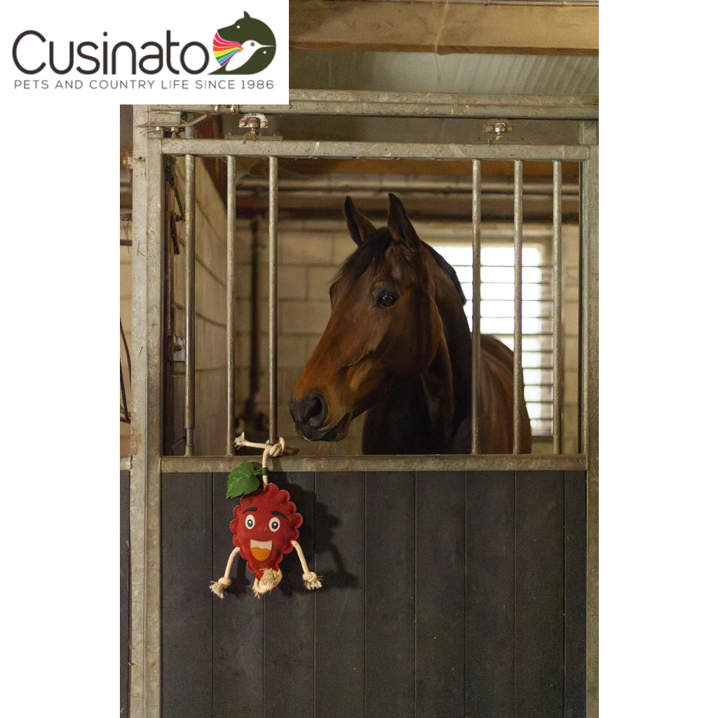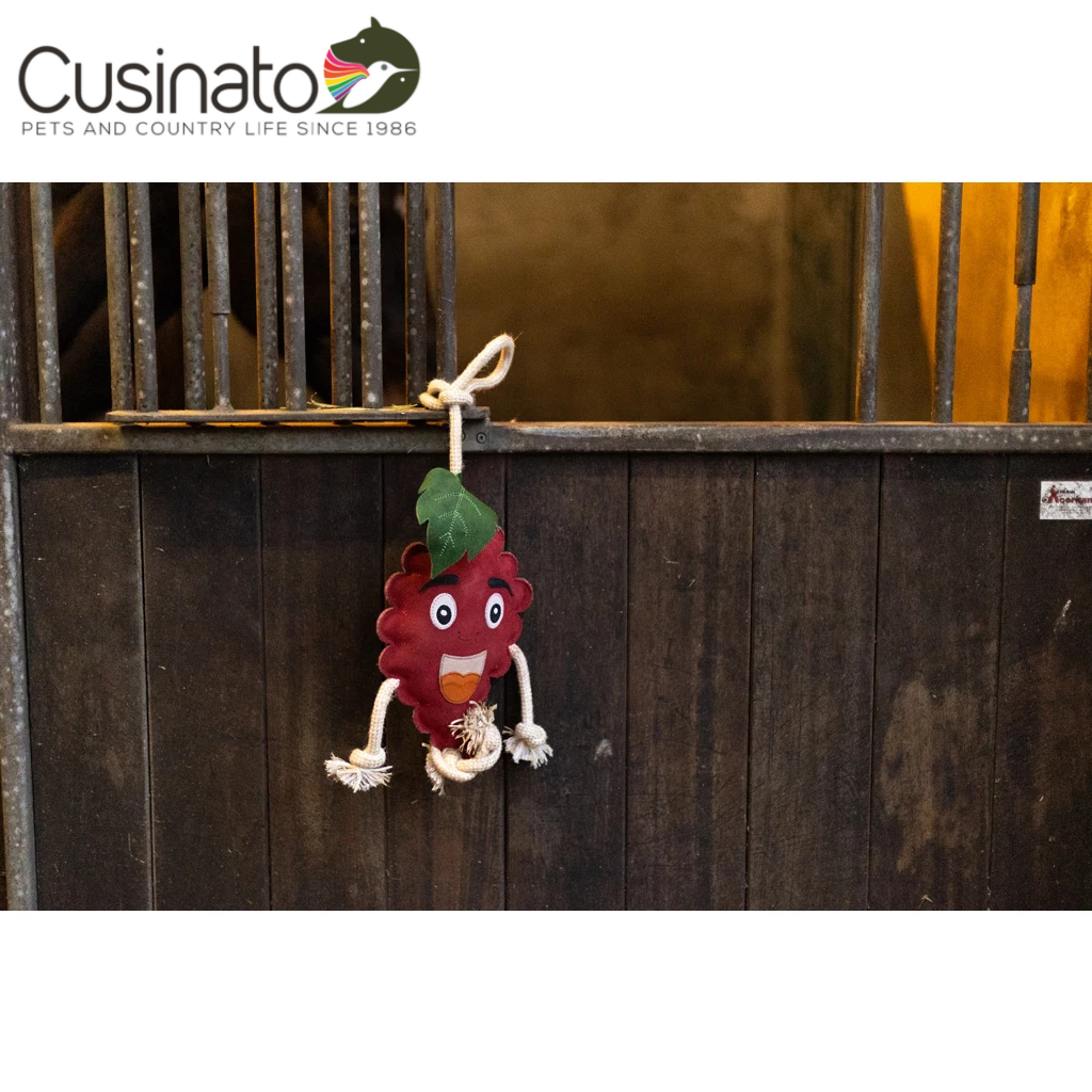 Questi amici fruttati non solo rallegrano la stalla, ma gli animali possono anche mordicchiare il giocattolo o giocare con le braccia o le gambe in corda.