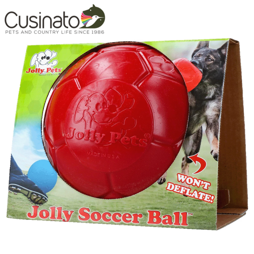Jolly Soccer Ball incoraggia un sano esercizio fisico e il gioco, realizzato in materiale Jollyflex, super resistente e anti-morso, può essere morso senza deformarsi o perdere liquido.