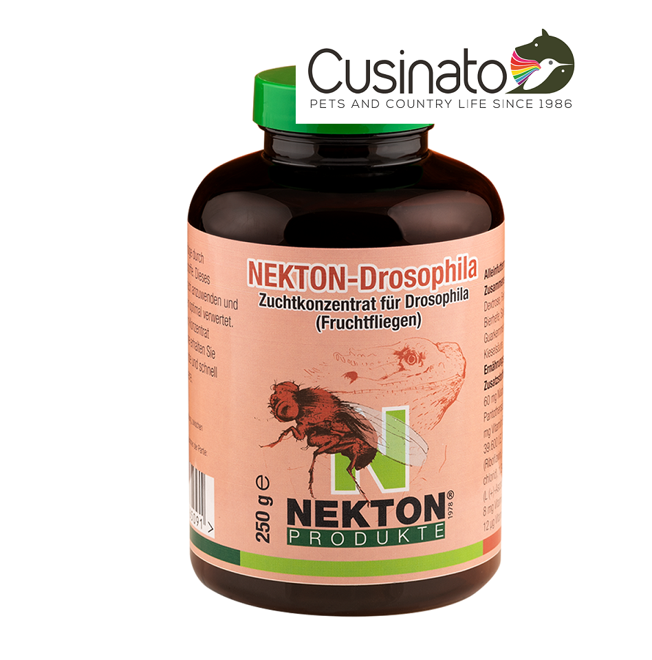 NEKTON-Drosophila è un composto di diverse vitamine, lievito e un colorante. Con questo concentrato per l’allevamento si ottiene in pochi secondi una base efficace e di alta qualità per l’allevamento dei moscerini della frutta come fonte di nutrimento per i rettili e uccelli, semplicemente mescolandolo con acqua calda.