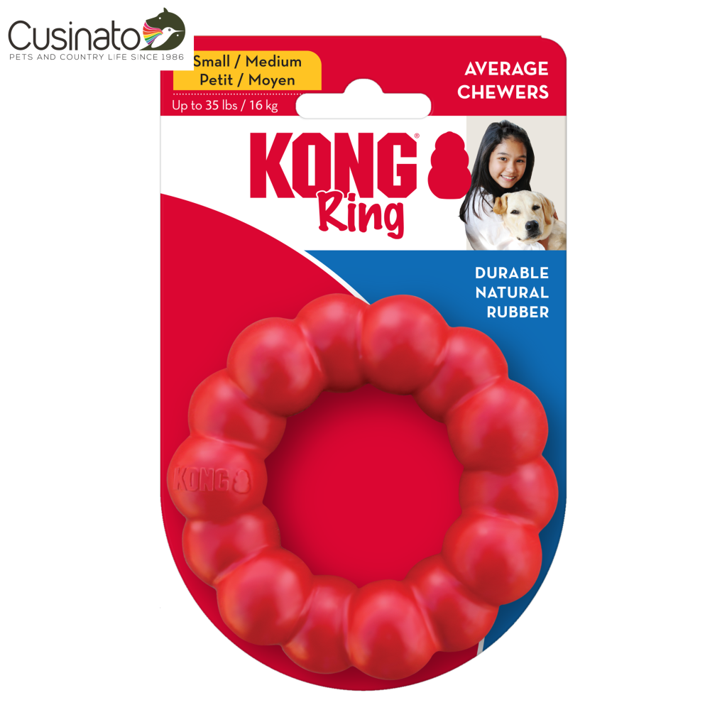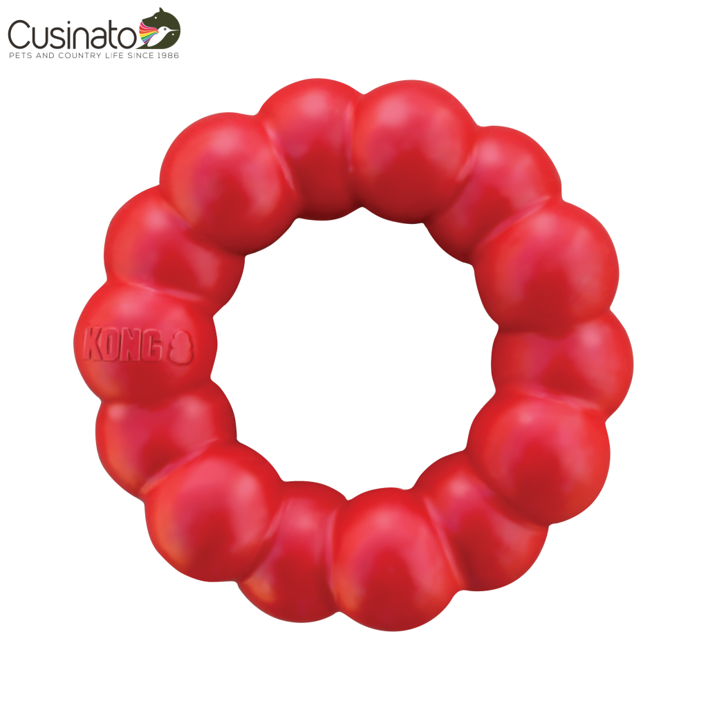 KONG Ring è ideato per lunghe sessioni di masticazione e soddisfa l’istinto naturale di masticazione del bastone. Realizzato nella naturale gomma rossa KONG, offre estrema resistenza e un maggior numero di protuberanze per stimolare il bastone e rendere piacevole la masticazione favorendo nel contempo la salute di denti e gengive.