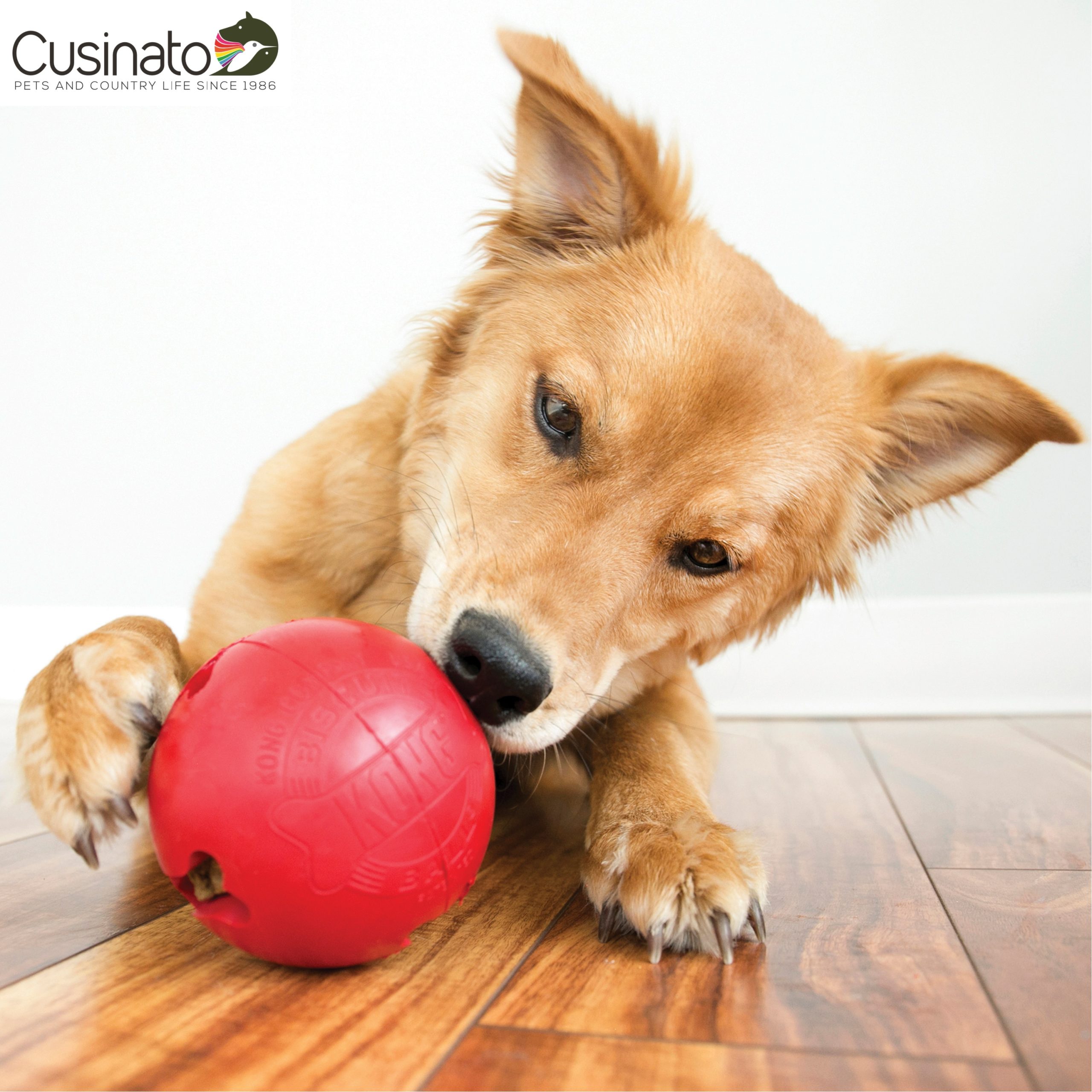 Il KONG Biscuit Ball™ è un originale giocattolo per cani che eroga cibo, con una cavità centrale e quattro fori a forma di osso da imbottire che possono contenere le crocchette o le ricompense preferite dal cane, è inoltre possibile congelarlo per prolungare la durata del divertimento.