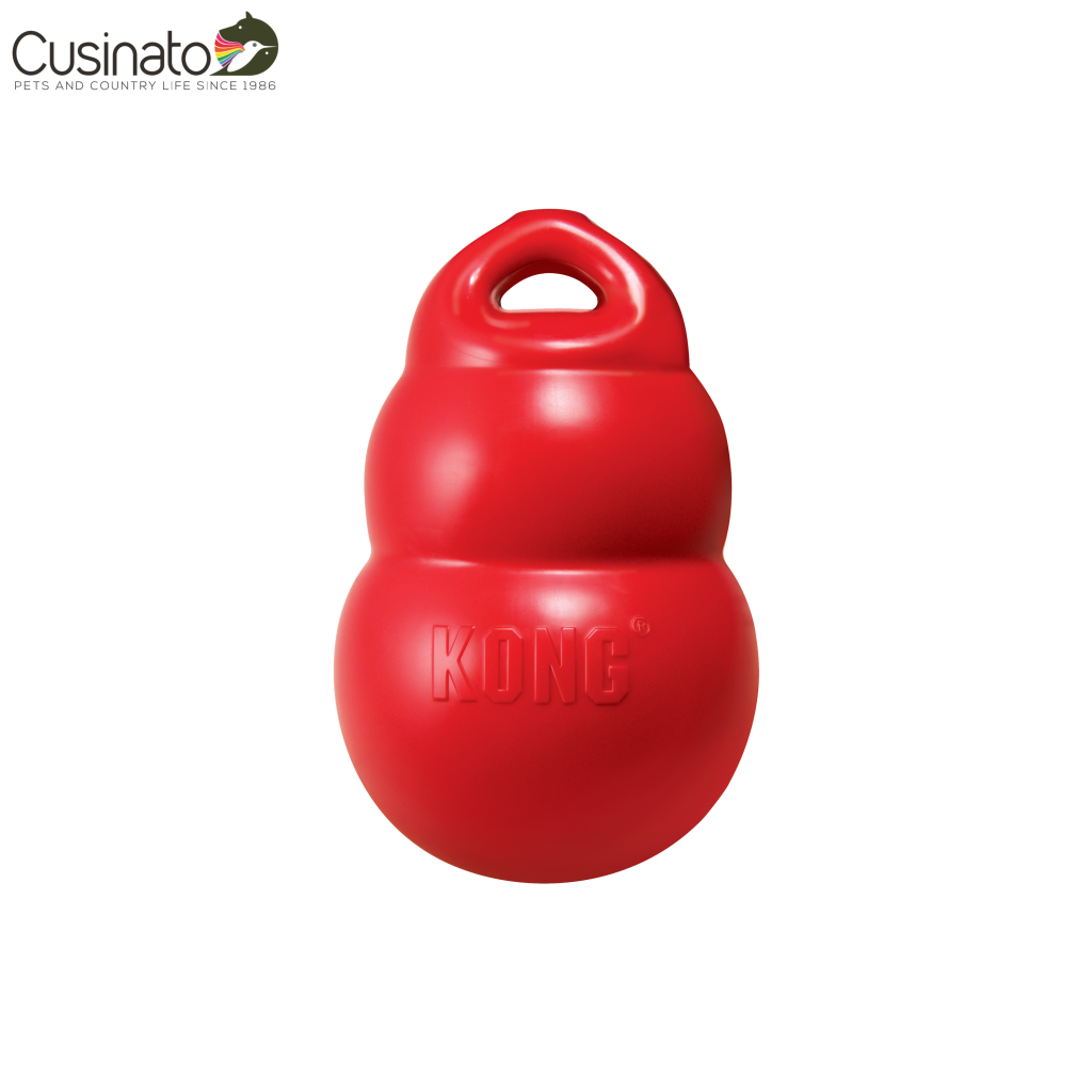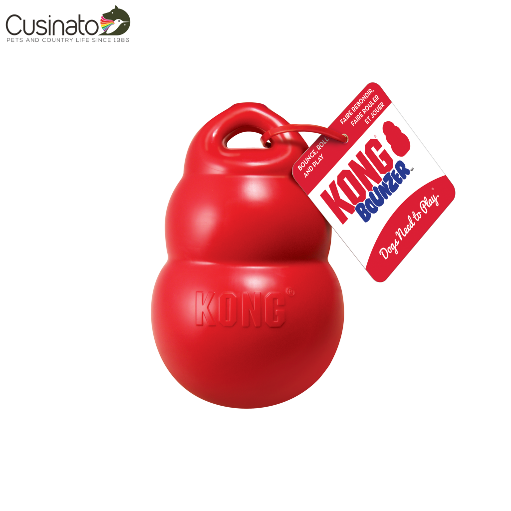 Realizzato nella classica forma KONG, il materiale più leggero lo rende perfetto per un divertente gioco di riporto. Il Bounzer™ si sgonfia quando il cane lo afferra, facendo uscire aria dal giocattolo, stimolando così il gioco individuale. Poi ritorna esattamente alla sua forma originale.