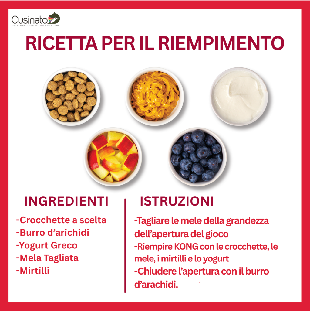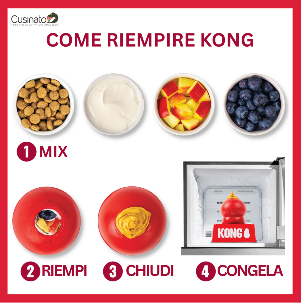 Si può riempire di croccantini appetitosi o con qualsiasi altra golosità, è inoltre possibile congelarlo per prolungare la durata del divertimento.
