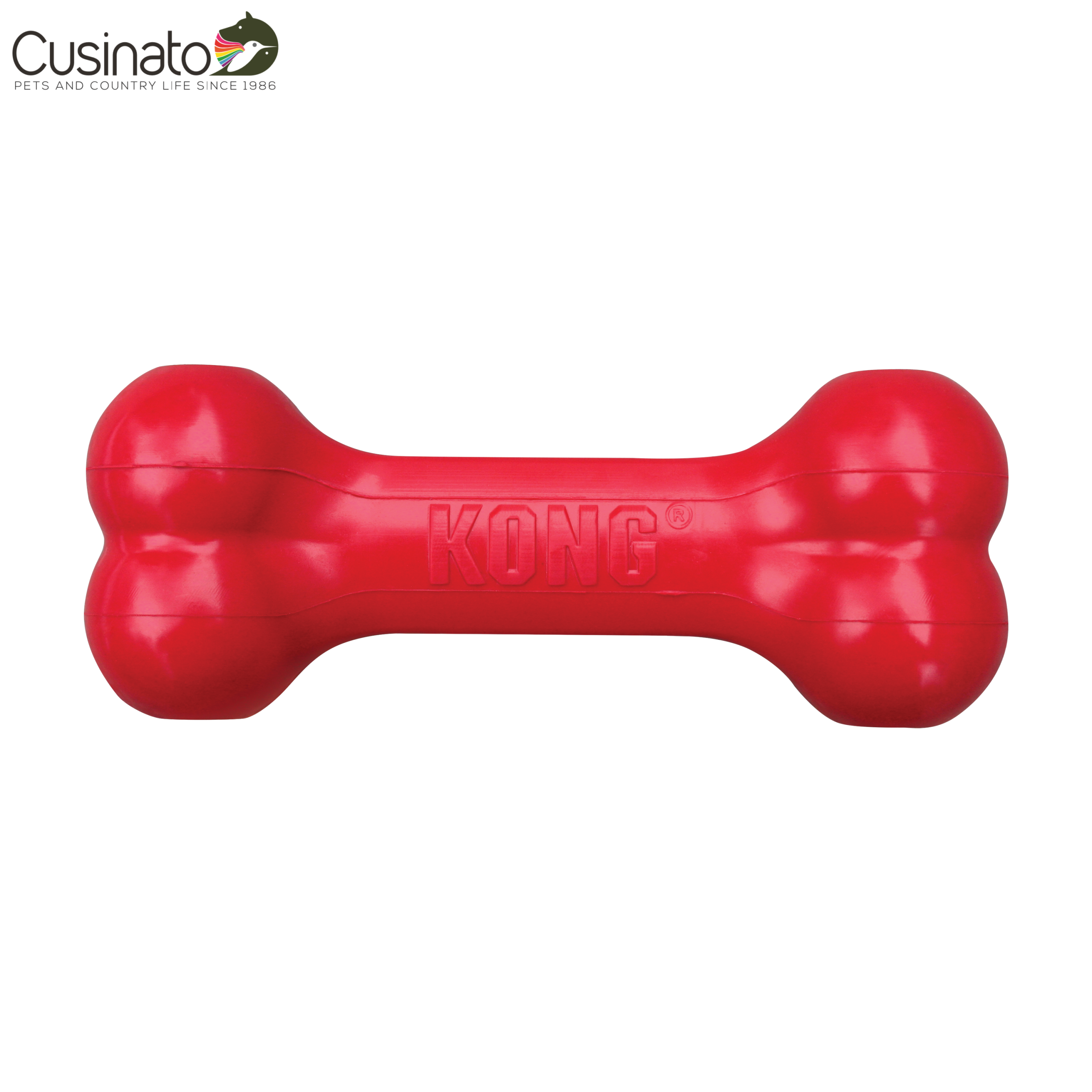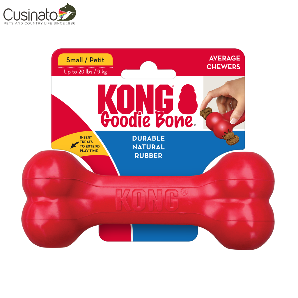 Il gioco KONG Goodie Bone™ stimola i cani che si divertono a masticare. Realizzato con l’esclusiva formula in gomma rossa completamente naturale KONG Classic, questo osso dispone di Goodie Grippers™ brevettati che trasformano questo gioco divertente in una giocosa sfida che eroga premi, che può essere riempita con i croccantini preferiti dal cane, è inoltre possibile congelarlo per prolungare la durata del divertimento.