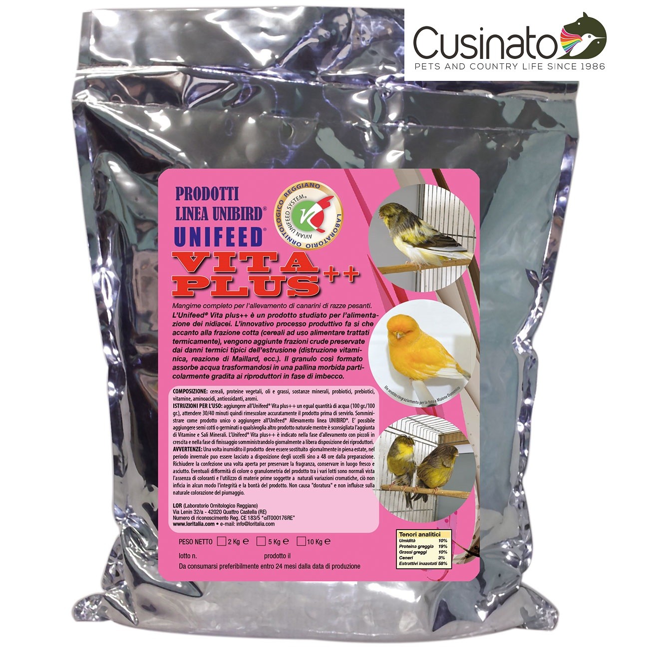 ISTRUZIONI PER L’USO: aggiungere all’Unifeed-Vita Plus++ un egual quantità di acqua (100 gr. /100 gr.), attendere 30/40 minuti quindi miscelare accuratamente il prodotto prima di servirlo.