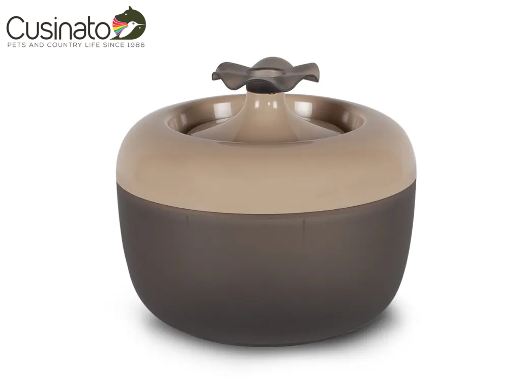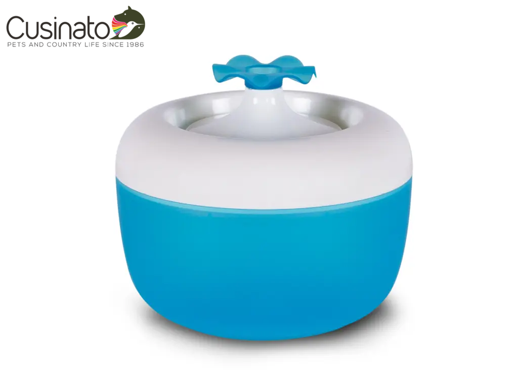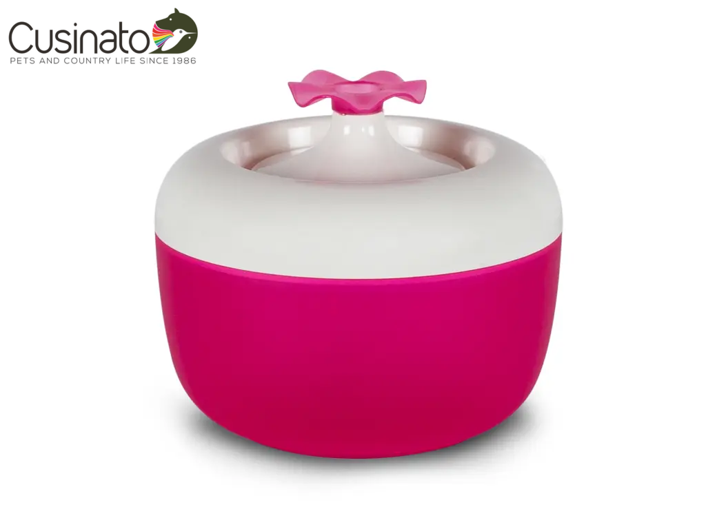 Fontana d’acqua per gatti, con filtro per acqua sempre pulita e bocchetta a forma di fiore.