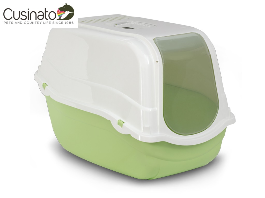 Questa lettiera è stata creata con superfici lucide per facilitarne la pulizia, ha inoltre un ingresso con porta ed è dotata di maniglia per un facile trasporto.