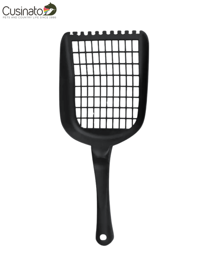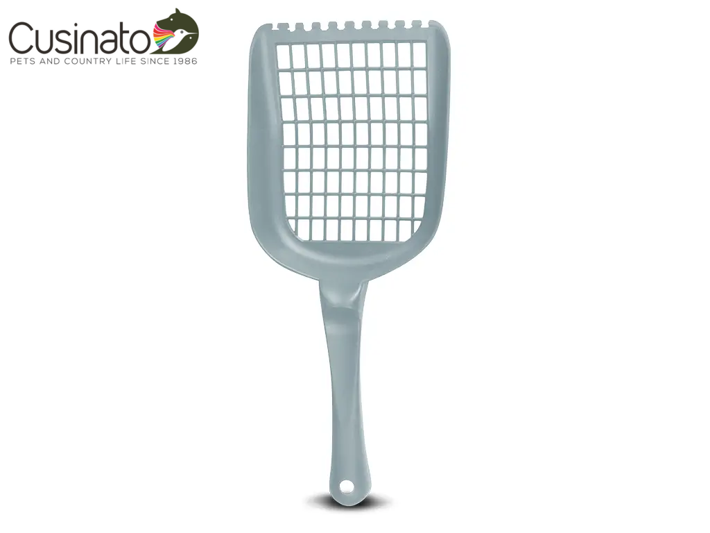 Paletta per lettiera con superfici lucide per facilitarne la pulizia, realizzata con plastica riciclata.