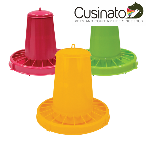 Realizzata in plastica, dotata di fondo antispreco e serbatoio conico regolabile per dosare la caduta del mangime.