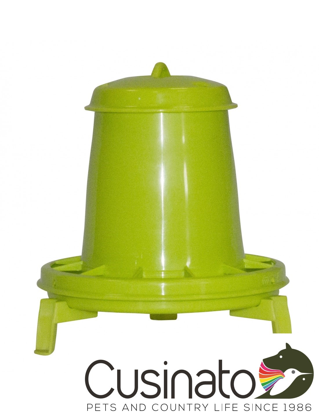 Realizzata in plastica, dotata di fondo antispreco e serbatoio conico regolabile per dosare la caduta del mangime.