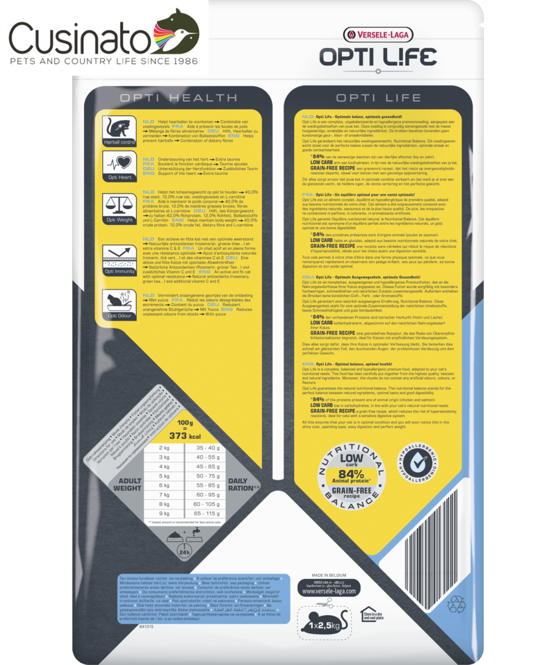 Per un rapporto ottimale tra quantità di cibo e peso corporeo consultare la tabella presente sul retro di ogni sacchetto.