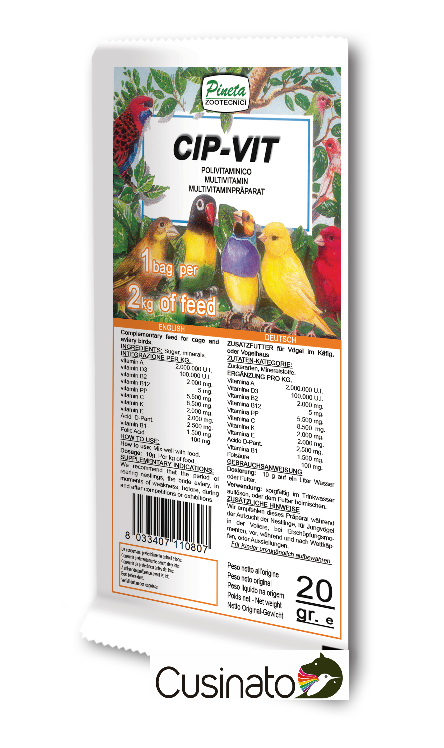 Integratore polivitaminico in polvere idrosolubile con fattori vitamino simili e aminoacidi essenziali.