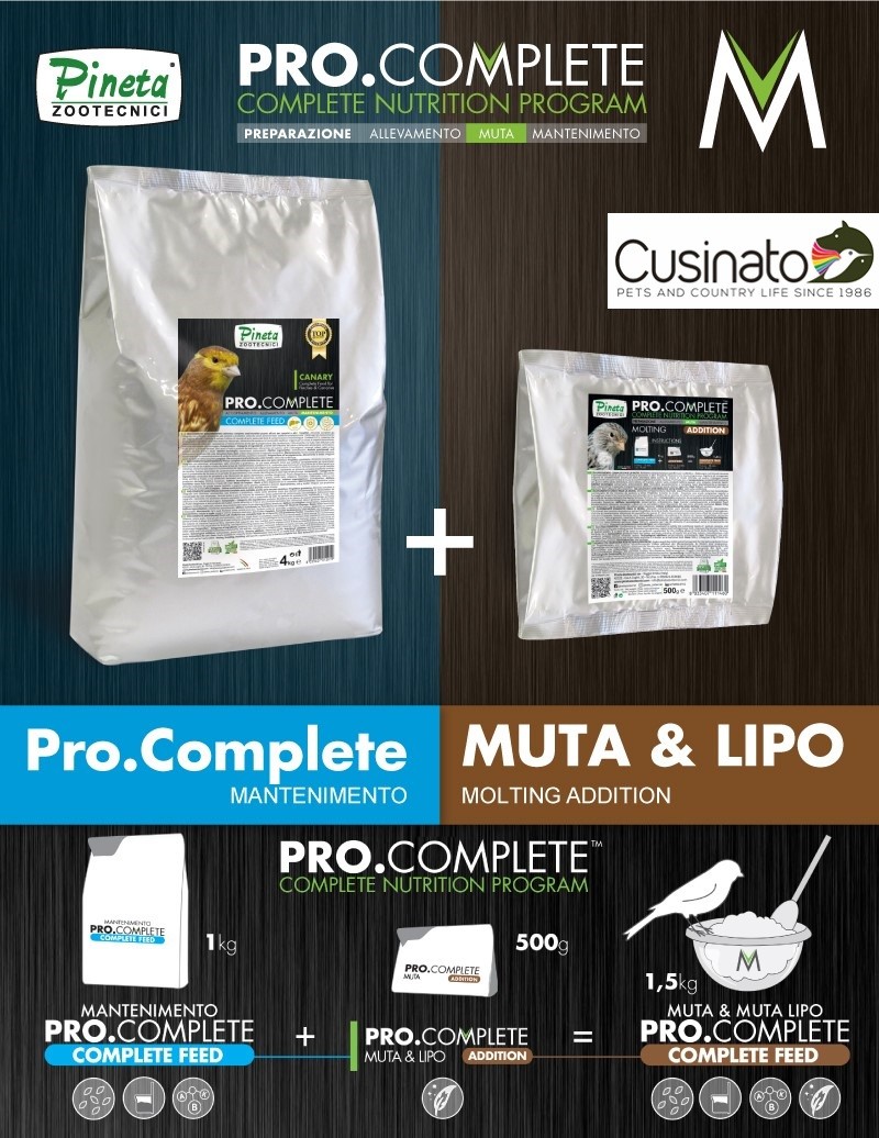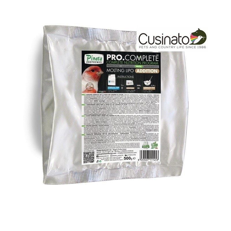 Pro Complete Pineta Muta Lipo Addition si utilizza nel periodo di muta dei Canarini, favorisce una muta progressiva, regolare e omogenea.