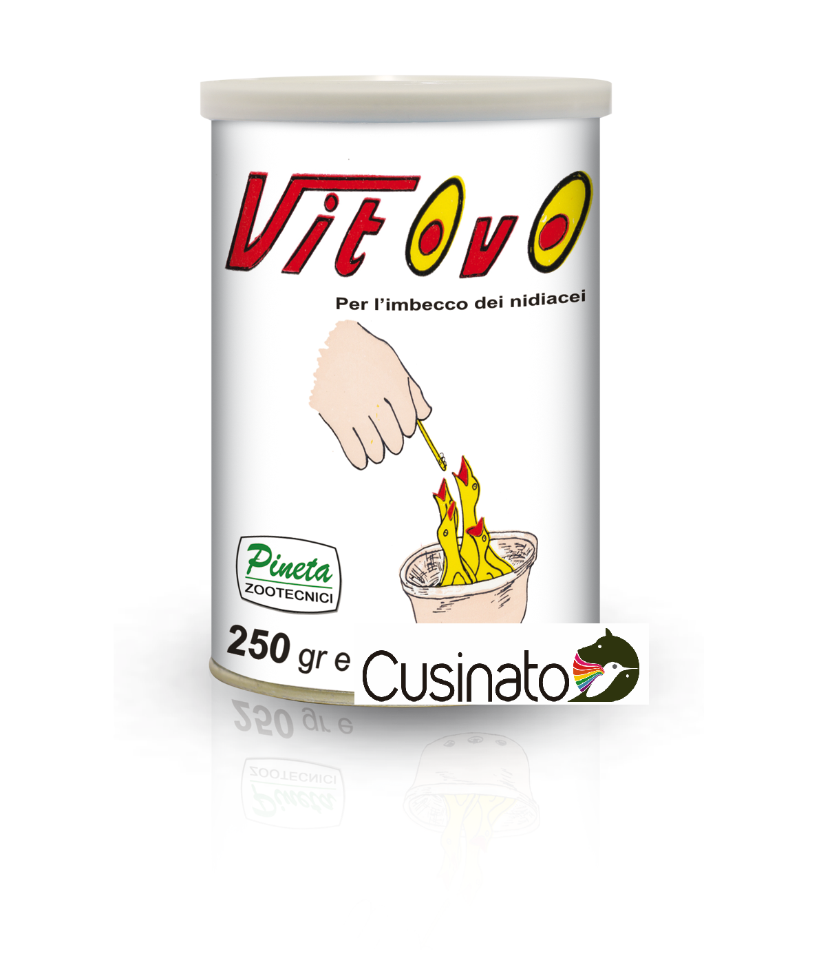 -Fin dai primi giorni di vita mediante imbecco (dopo aver diluito il VITOVO con una quantità d’acqua tale da ottenere un impasto morbido cremoso e vellutato)