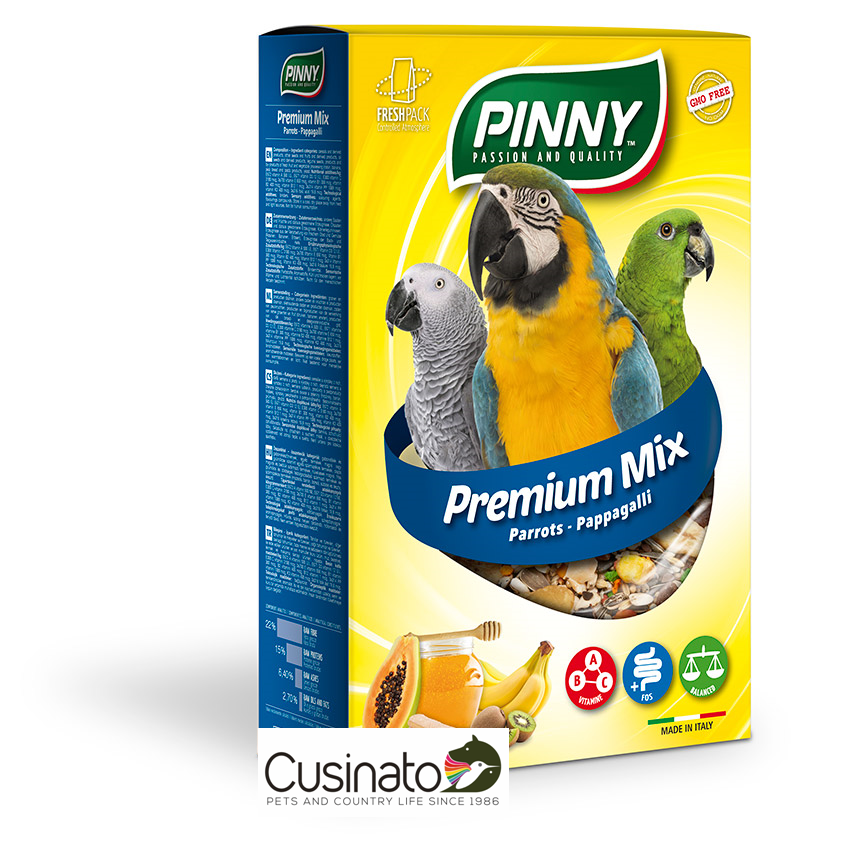 Miscela di semi selezionati di alta qualità, arricchita con granelli alla frutta per il fabbisogno giornaliero dei pappagalli di taglia medio grande (cenerini, amazzoni, cacatua, ara, ecc.).