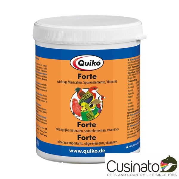 Quiko Forte favorisce la fecondazione attraverso la combinazione ideale di vitamina E e ferro. 27 diversi minerali, oligoelementi e vitamine appositamente studiati per le esigenze degli uccelli assicurano una crescita ossea ottimale e la corretta fuoriuscita del piumaggio.