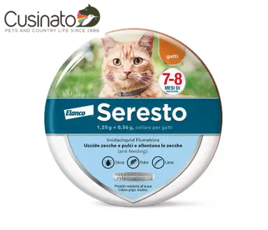 Seresto collare per gatti è stato sviluppato sulla base di una combinazione di materiali innovativa (Polymer Matrix) che offre un rilascio basso e costante dei suoi due principi attivi fino a 8 mesi, fornendo al gatto una protezione continua verso pulci e zecche.