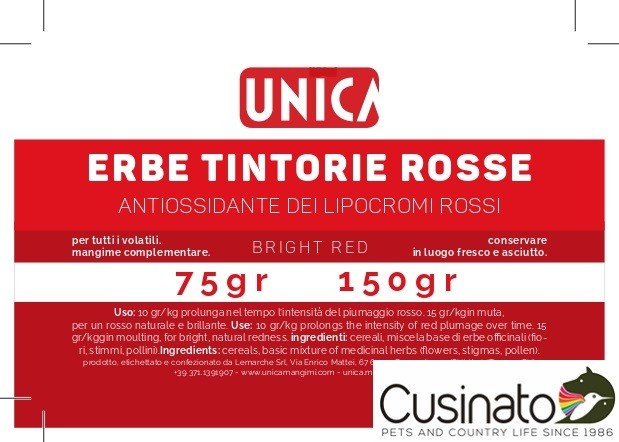 Può essere utilizzato per la muta vera e propria di soggetti a fattore rosso o come antiossidante dei granuli lipofili propriamente rossi. Mantiene carico e ricco di differenti sfumature di rosso il vessillo. È in grado di evitare lo stress dei lipocromi i quali non vireranno in arancio.