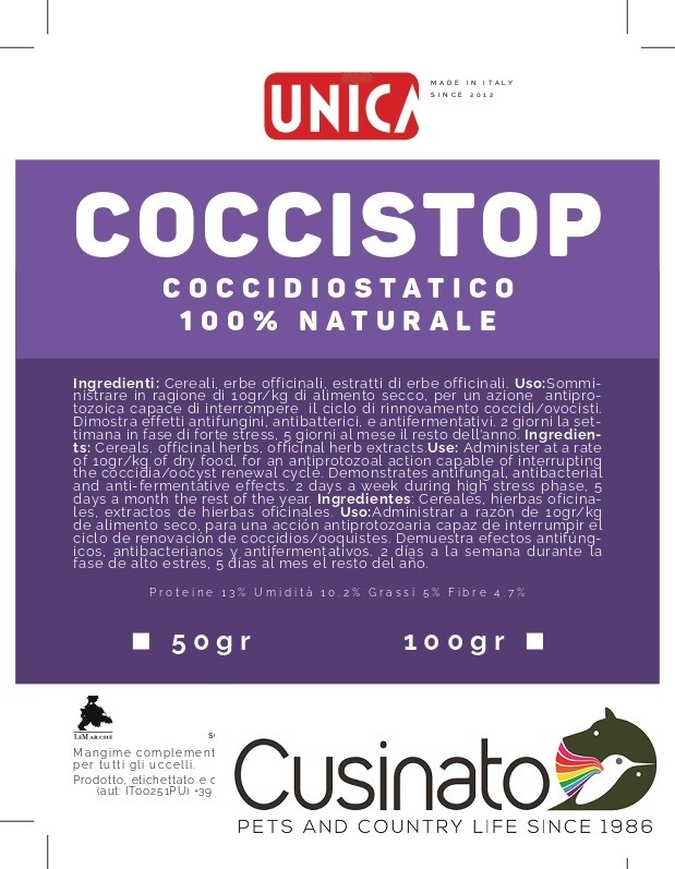 L’utilizzo di coccis-top in ragione di 10 gr/kg di alimento secco (pastoncino o altro mangime) per 5 giorni al mese controlla lo sviluppo dei coccidi evitandone la proliferazione e l’eventuale comparsa della coccidiosi, vera e propria piaga degli allevamenti moderni.