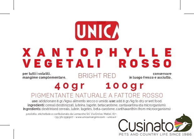 -6-10 gr/kg in pastoncino due/tre volte a settimana in fase di muta.-Per la colorazione di canarini da nido: 10gr./kg almeno da 13 giorni prima della ovodeposizione.