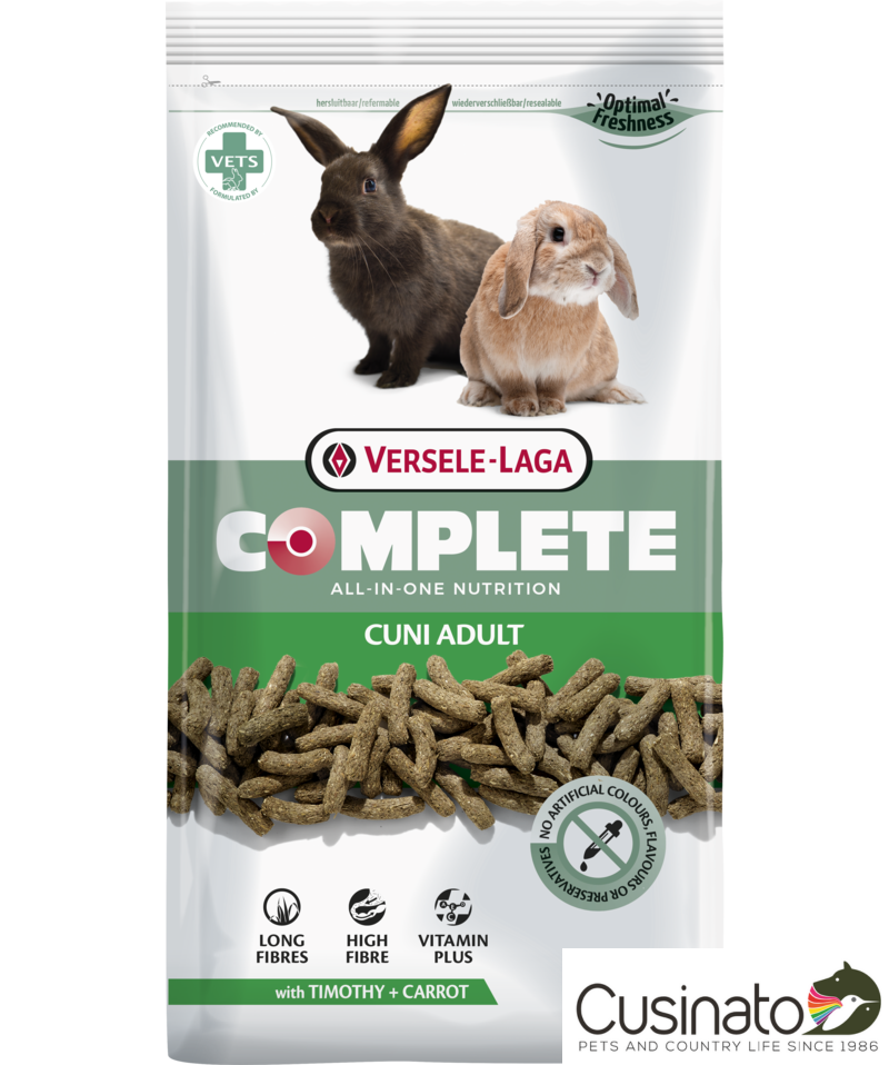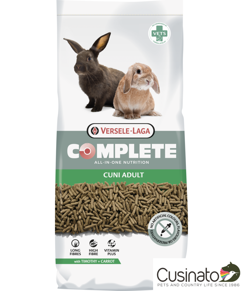 Versele-Laga Complete Cuni adult è una fonte di nutrimento sicura, i pellet estremamente saporiti “tutto in uno” evitano l’alimentazione selettiva.